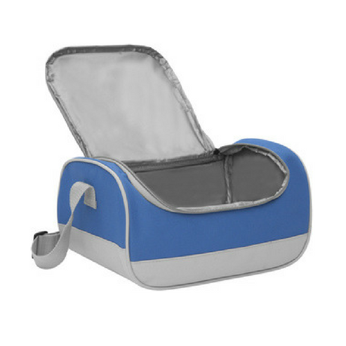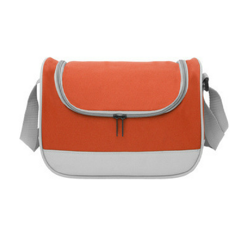 Poliéster. 27 x 19 x 14 cm. Capacidad 7 litros. Conservadora con interior de polietileno. Correa ajustable.