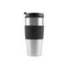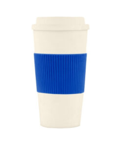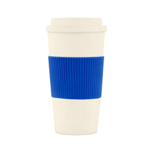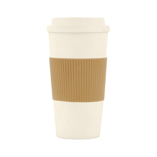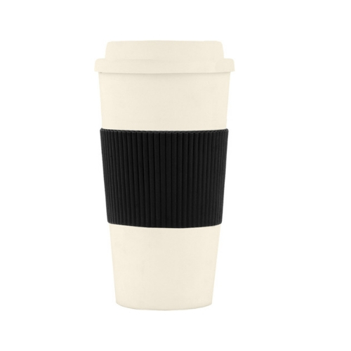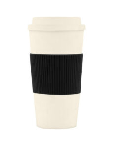 Incluye abertura en tapa para beber. Grip térmico de goma imitación cartón corrugado. Base antideslizante.