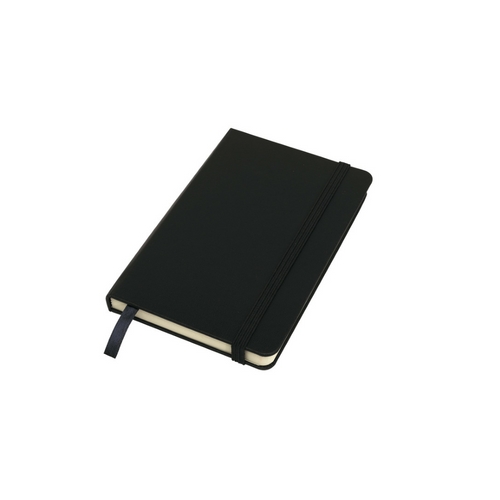 Libreta con 80 hojas rayadas y separador en tela. Posee cierre con banda elástica. Amplia área de impresión