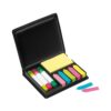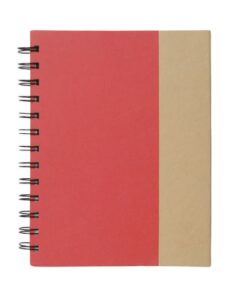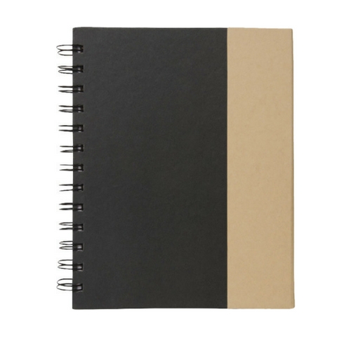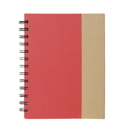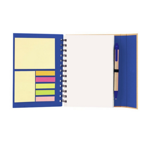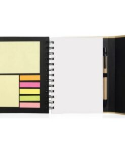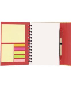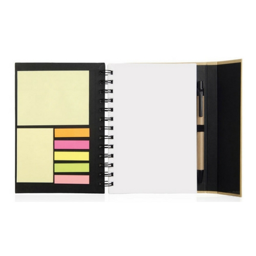 Cuaderno de cartón con espiral. Dos post it rectangulares (grande y mediano), cinco post it señaladores de diferente color y bolígrafo. 70 hojas lisas.Cierre imantado