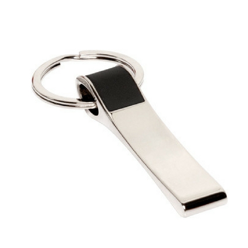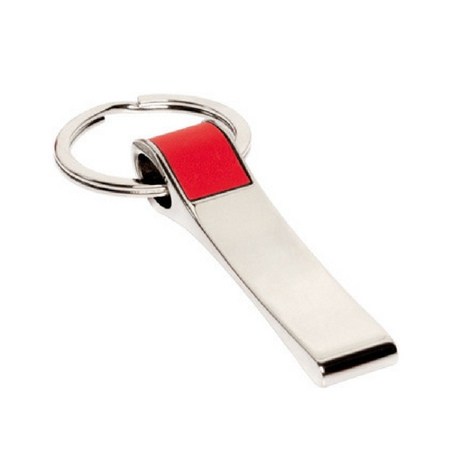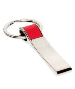 Llavero plano con detalles en la parte superior símil cuero con arandela metálica
