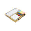 Contiene bandas elásticas, abrochadora, cinta adhesiva, agujereadora, post its y clips metálicos.