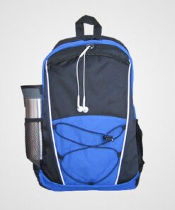 Posee un bolsillo frontal independiente con cierre, frente con detalle en cinta elástica con mosquetón de ajuste para el trasporte de objetos.Vivos en color blanco y detalles refractarios.Cierre en boca principal con salida para auriculares en la parte superior.Interior forrado.Manija superior en cordura.Correas acolchadas con cintos regulables.Bolsillos laterales en Ripstop.600D/Ployester