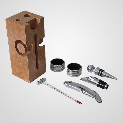 Incluye: destapador, dos corta gota, pico vertedor, tapón y termómetro