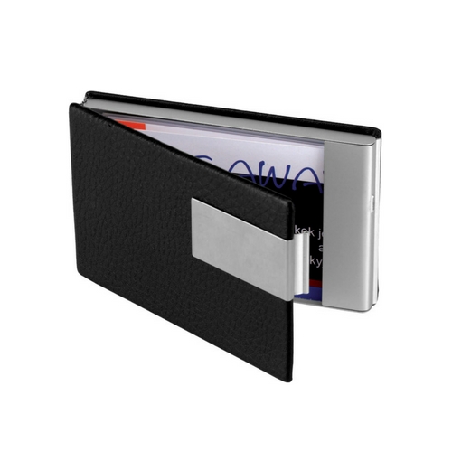 Tarjetero de aluminio y símil cuero. Cierre a presión